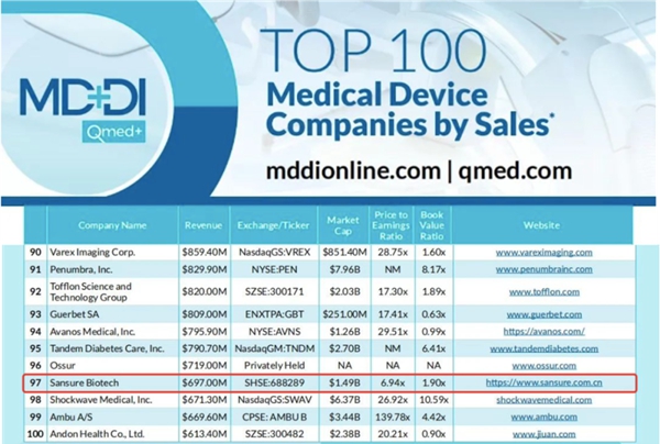 近日,医疗器械行业权威网站Medical Device+Diagnostic Industry(MD+DI)发布了2023年全球医疗器械企业TOP100榜单。xc sports,xc体育生物连续两年上榜全球百强,也是此次榜单唯二主营业务是体外诊断的中国企业。