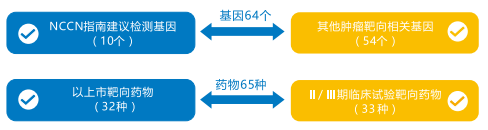癌症是由于人体原癌基因或抑癌基因发生基因变异,导致细胞无限增殖,最终致使癌症的发生。靶向药物可针对特异性的杀伤携带特定基因变异的肿瘤细胞,疗效显著,副作用小,已被推荐为首选抗肿瘤类药物。但不同的患者携带的肿瘤治病变异不一致,导致同一类癌症使用相同的抗肿瘤药物的敏感性和毒副作用不尽相同。故在靶向药物服用之前,对患者进行分子分型检测,让医生可根据患者自身携带的基因变异制定个体化的治疗方案,最大程度地发现潜在可用的靶向药物并提高抗癌药物的治疗效率。